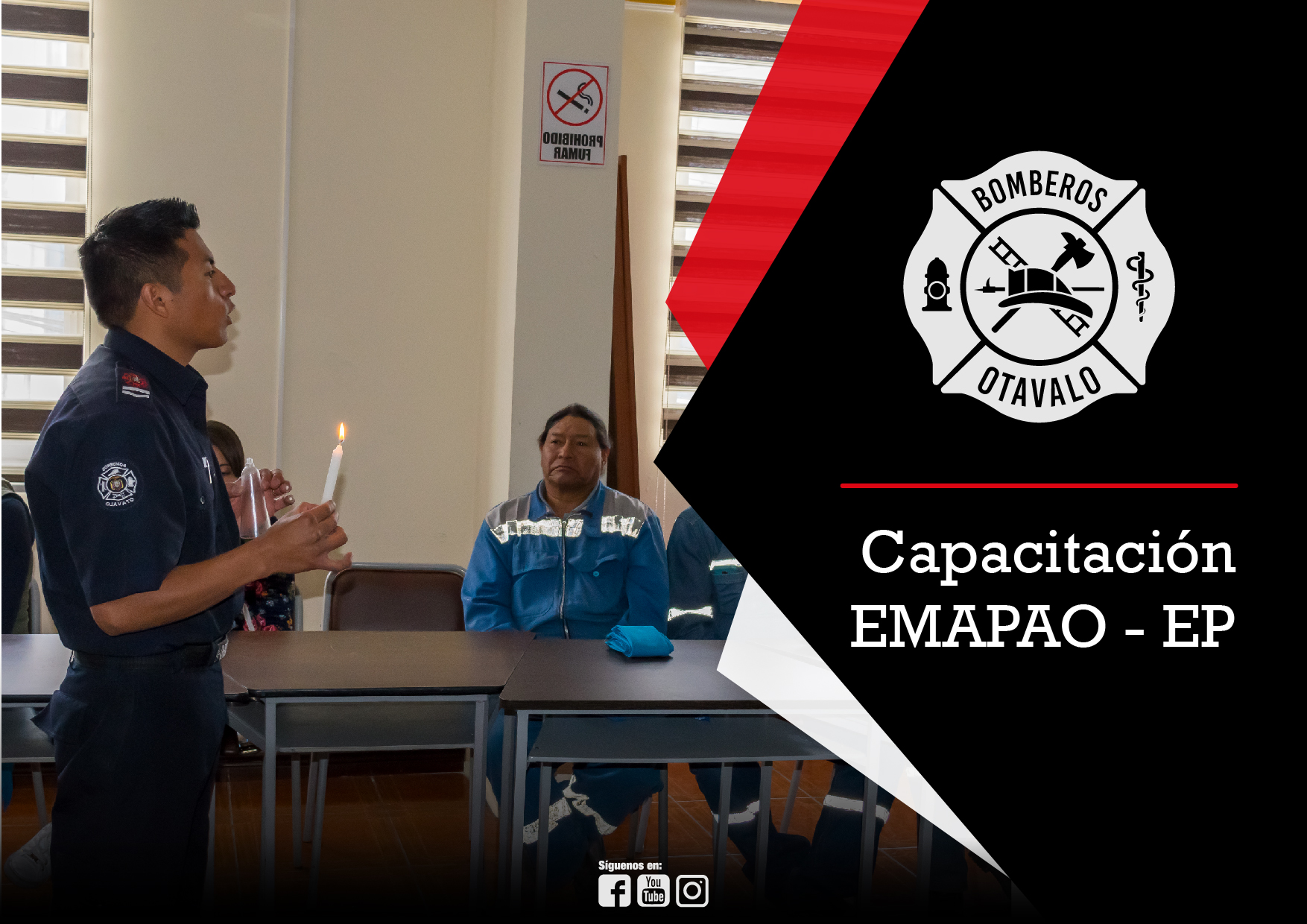 Personal Operativo del Cuerpo de Bomberos del Cantón Otavalo realizan la capacitación al personal de EMAPAO-EP referente a la conformación de brigadas de seguridad, prevención de incendios y evacuación.